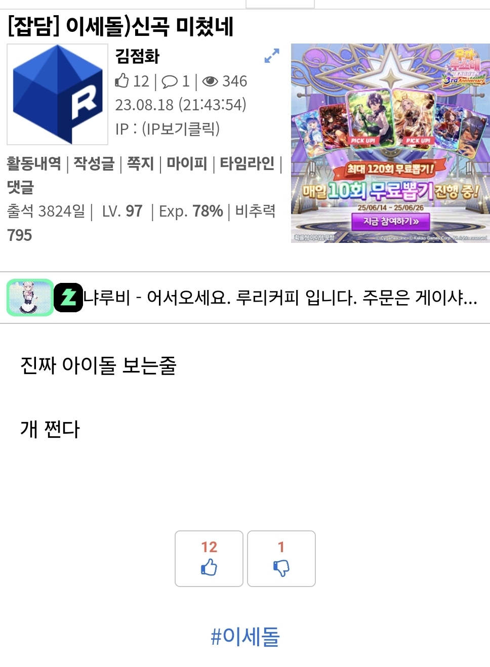???: 성대... 떨었다고...! | 25.06.17 13:15 | | |