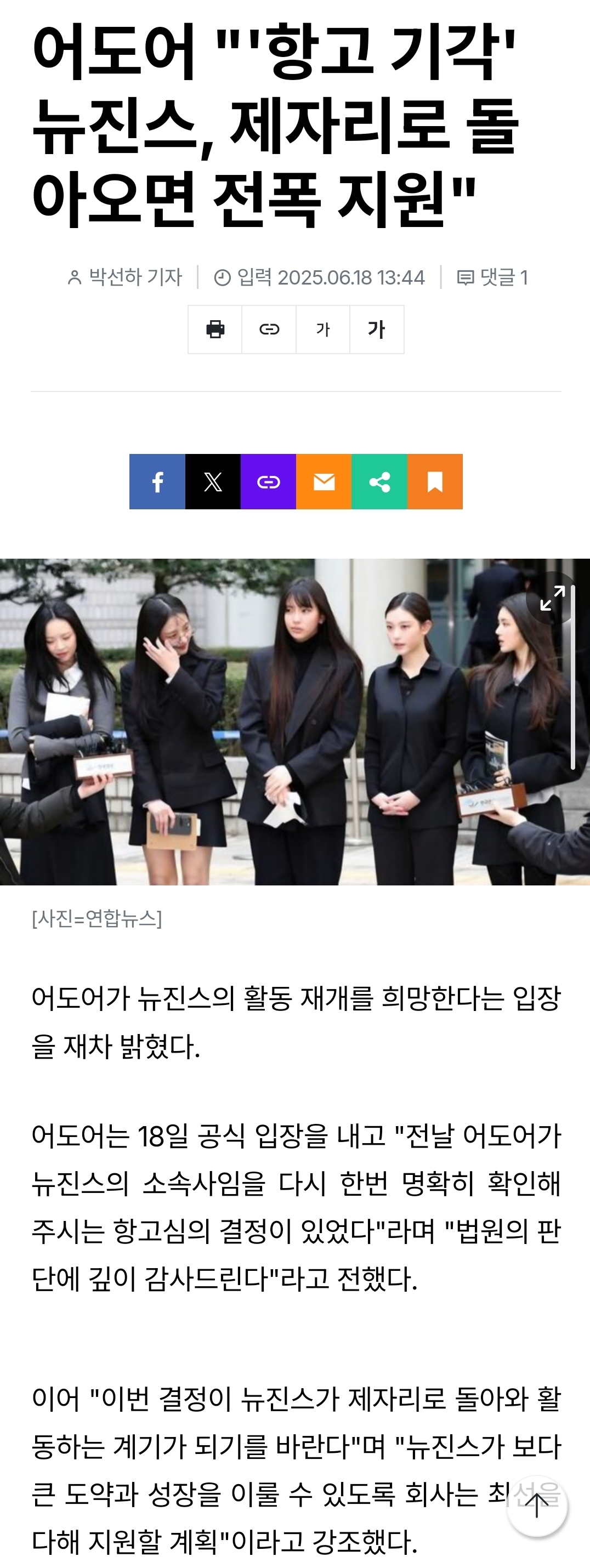 겠냐? ㅋ 애초에 뉴진스애들 어도어 나오기 전에도 하이브 내부 문건 내용만 봐도 애들 싫어하는 티가 팍팍 나는데 ㅋㅋ | 25.06.19 02:53 | | |