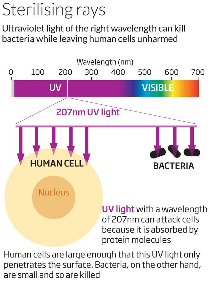 파장이 207나노미터인 자외선은 단백질 분자의 결합에 잘 흡수되서 결합을 끊는데