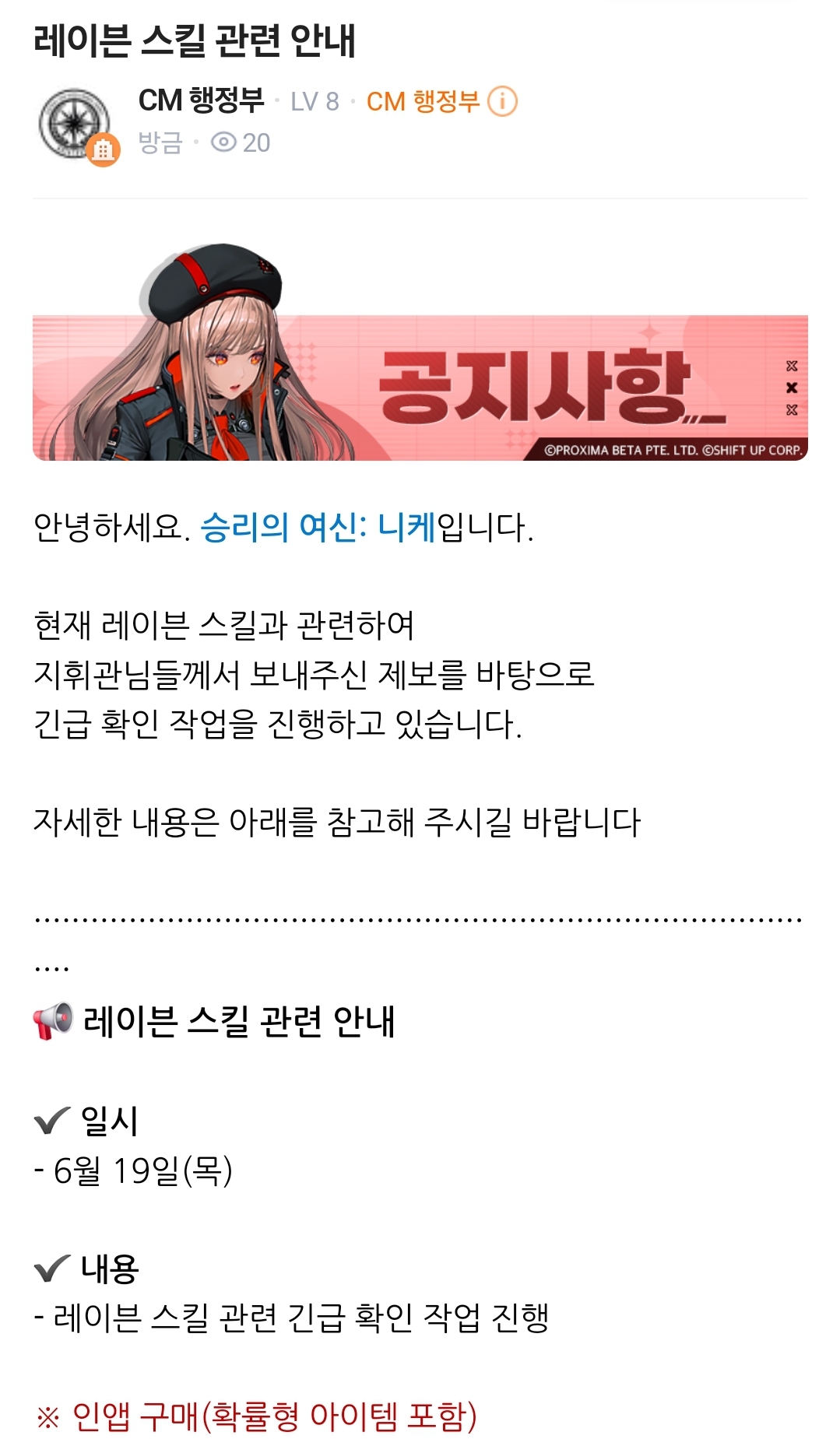 [게임] 니케) 신캐 버그아님? 소리듣던 레이븐 근황