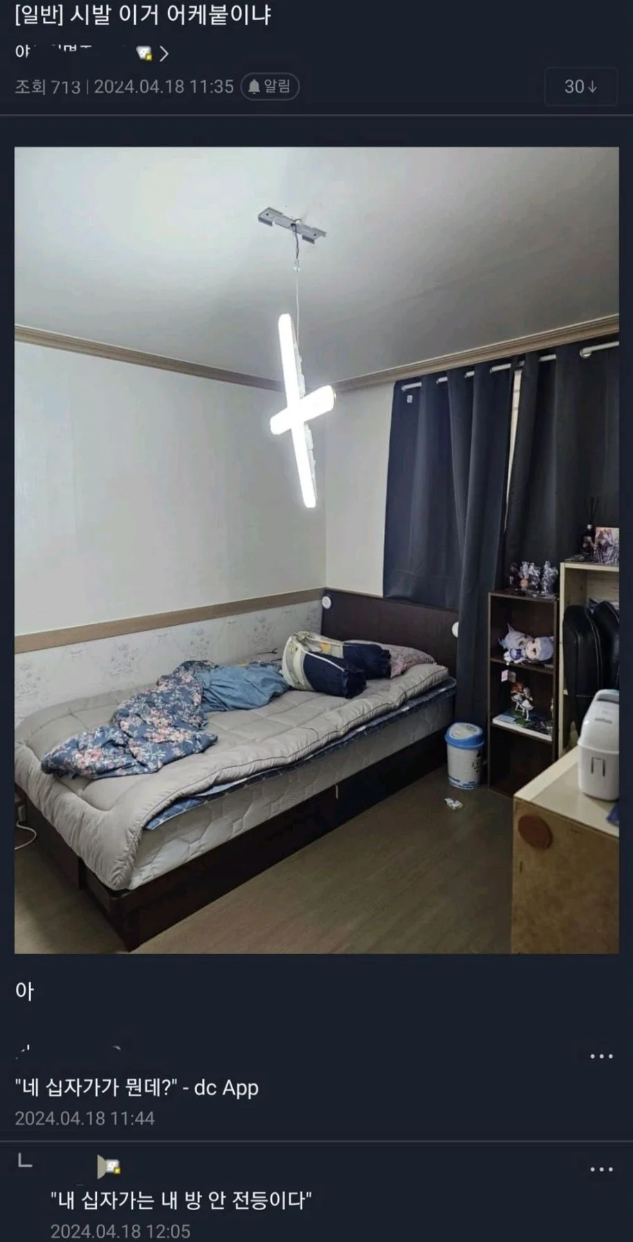 악마는 괴롭히러 왔다가 방꼬라지가 그를 더 괴롭힌다는것을 깨닫고 비웃고 갔답니다 | 25.06.19 21:07 | | |