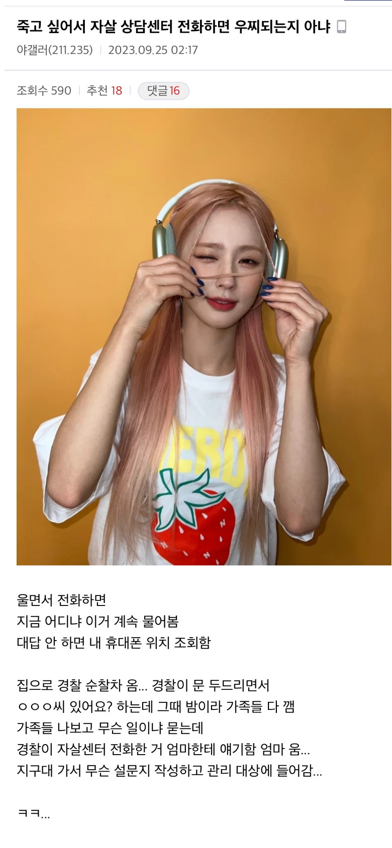 사실 저렇게 상담센터라도 전화하는건.. 날 알아봐달라는 마지막 외침이기도 하지 살고싶다는 실낱같은 무의식이기도하고 | 25.06.21 03:07 | | |
