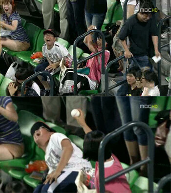 [유머] 아들에게 튕겨나온 야구공을 잡아 기쁜 어머님