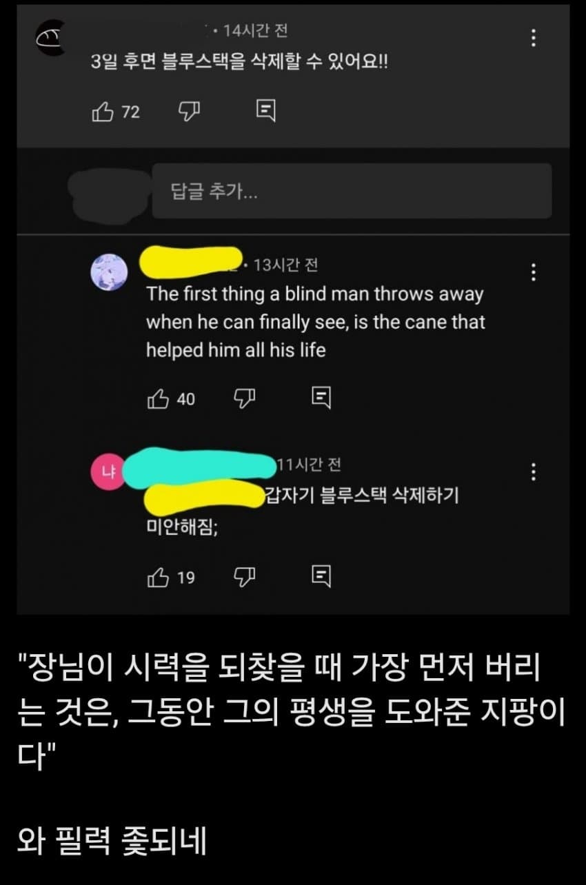 실제로 아침에 일퀘 깨고 블루스택 지워버린 사람 있다고 ㅋㅋㅋㅋ