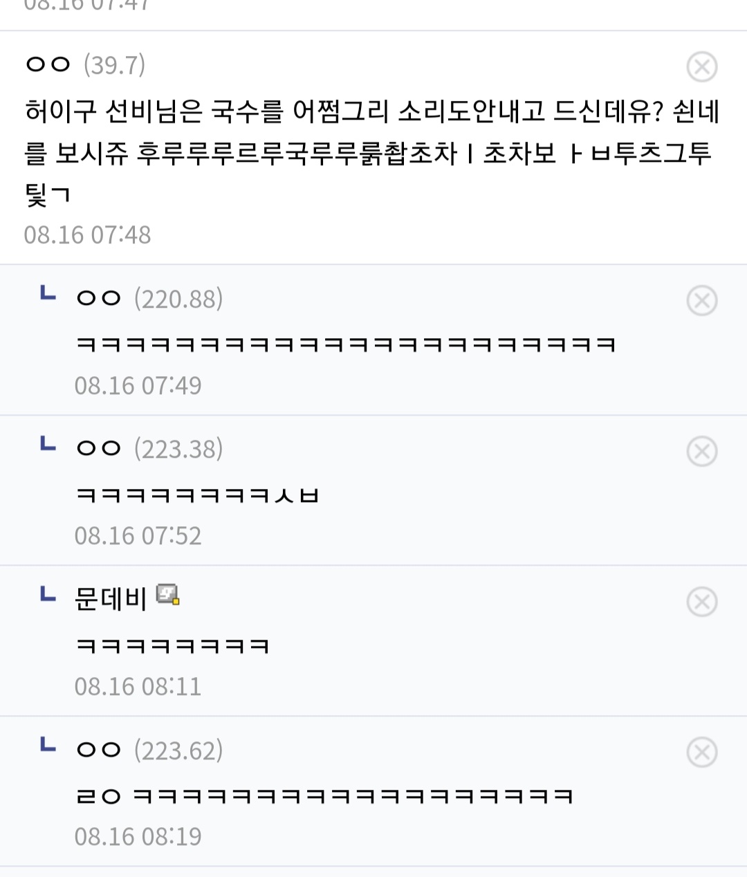 기본적인 후루룩 소리는 다내지 면치기가 보기 싫은거지 | 25.06.24 12:30 | | |