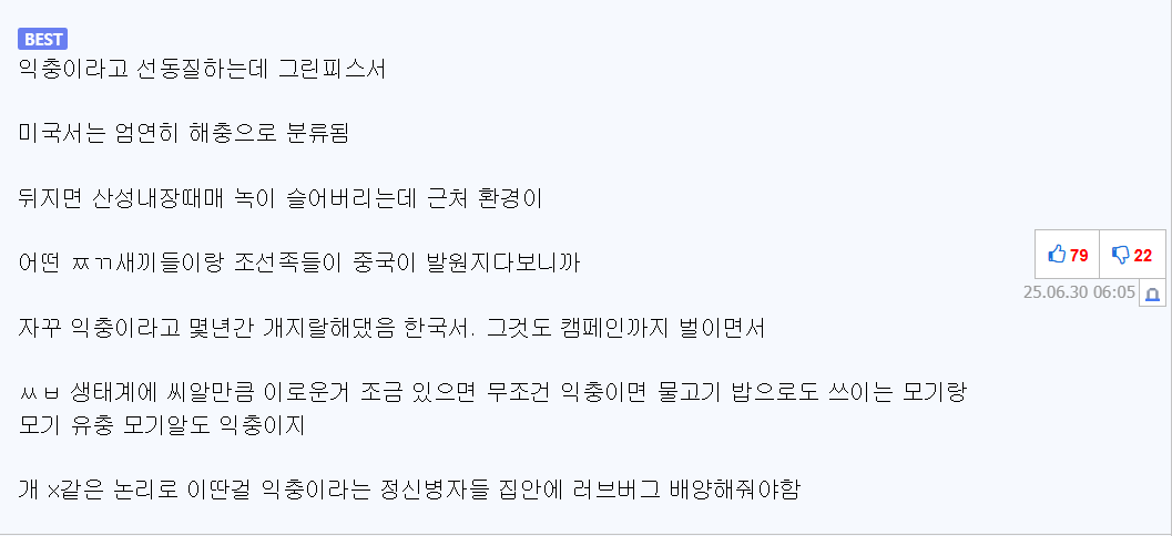 익충도 적당할때 익충이지 저쯤이면 해충임. | 25.06.30 20:18 | | |