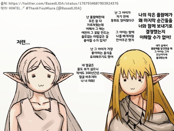 아닌가? 전대 용사처럼 보이는 사제 엘프도 인간이랑 정 많았었는데 그냥 프리렌이 다른 엘프들보다 사회성 꼴박한건가 ㅋㅋㅋㅋ | 25.07.13 14:40 | | |