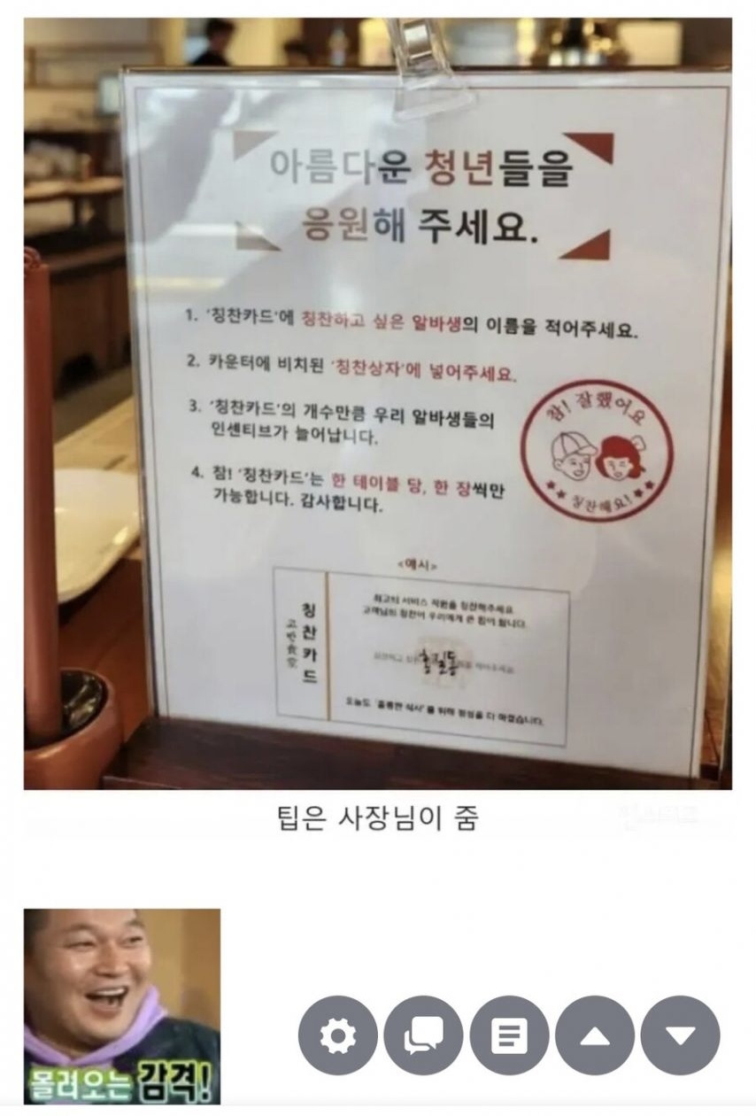 저래봤자 잘생기거나 이쁜애들만 칭찬카드 받겠지... 예전에 알바할때 똑같이 일하고 똑같이 실수하는데 이쁜애들만 고객의 소리로 칭찬 받더라