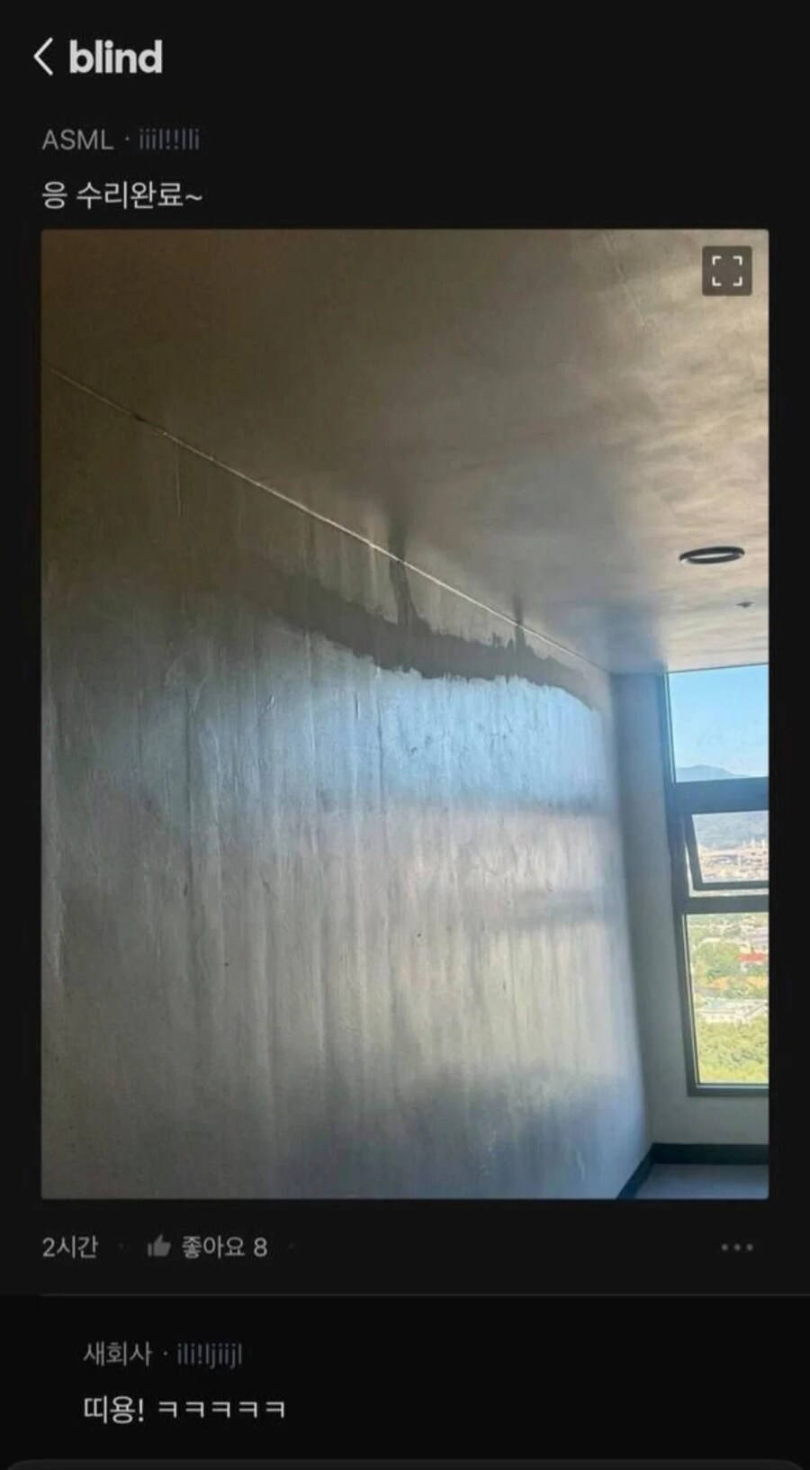 그치? 공용공간이니까? 보통내력벽이라서 나도 하는 일이 하는일이라 궁금해서 자료좀 찾아보려고 인터넷 보는데 건설사 설명이 올라온게 v컷팅후 보수하려고 놔뒀는데 그걸 그사이에 주민이 봐서 갑자기 크랙이 커졌다! 이런거라는 이야기도 있더라 ㅋㅋㅋ | 25.07.29 13:38 | | |