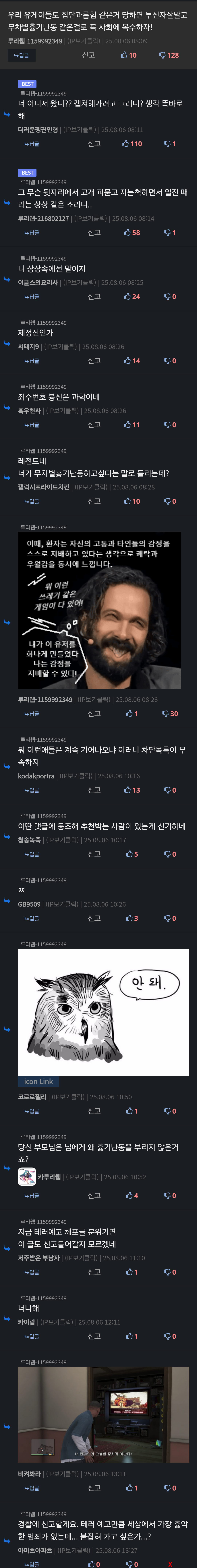 가해자가 저걸보고 받긴할까? 그냥 제수없다 하고 말것 같은데.. 사람을 저지경까지 몰고간 시점에서 이미 사람이 아닌데 난 모르겠음 | 25.08.06 08:15 | | |