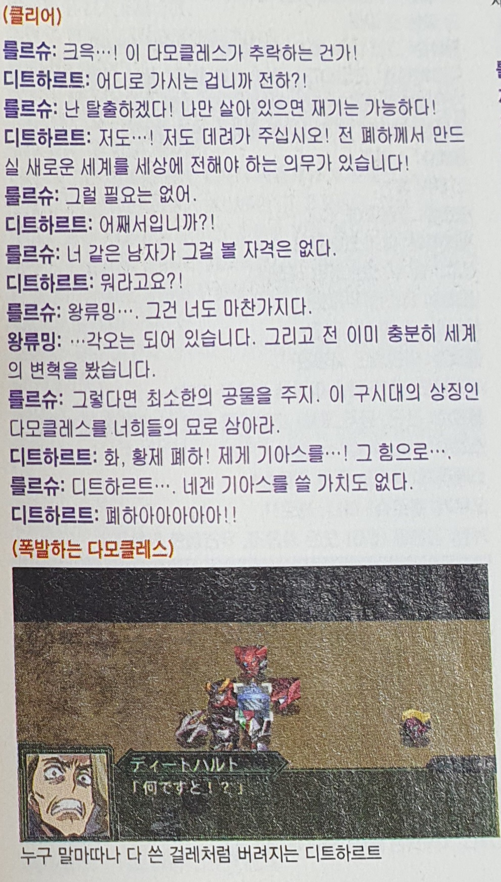 방영당시 개그짤 돌던거 생각나네 마지막에라도 기적을 체험하고 싶은건지 기어스를 써달라는 디트하르트에게 죽지마, 디트하르트! 죽지마! 로 제일 쓰잘데기 없는 기어스를 써서 능욕해주는 를르슈