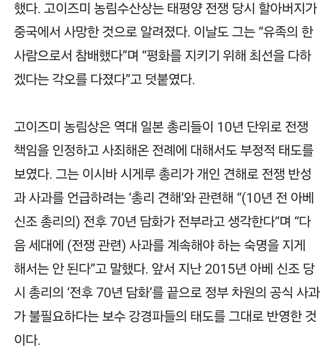 고이즈미는 사과하면 안된다고함