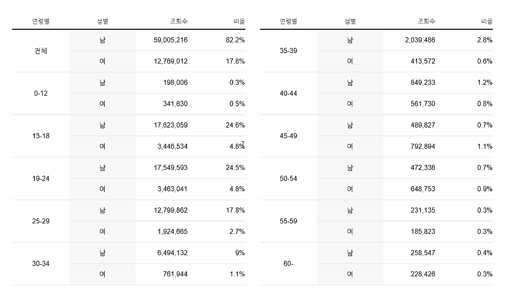 트위터에서 사이버불링하고 팬아트가지고 괴롭히는거 보면 남초는 아닌듯