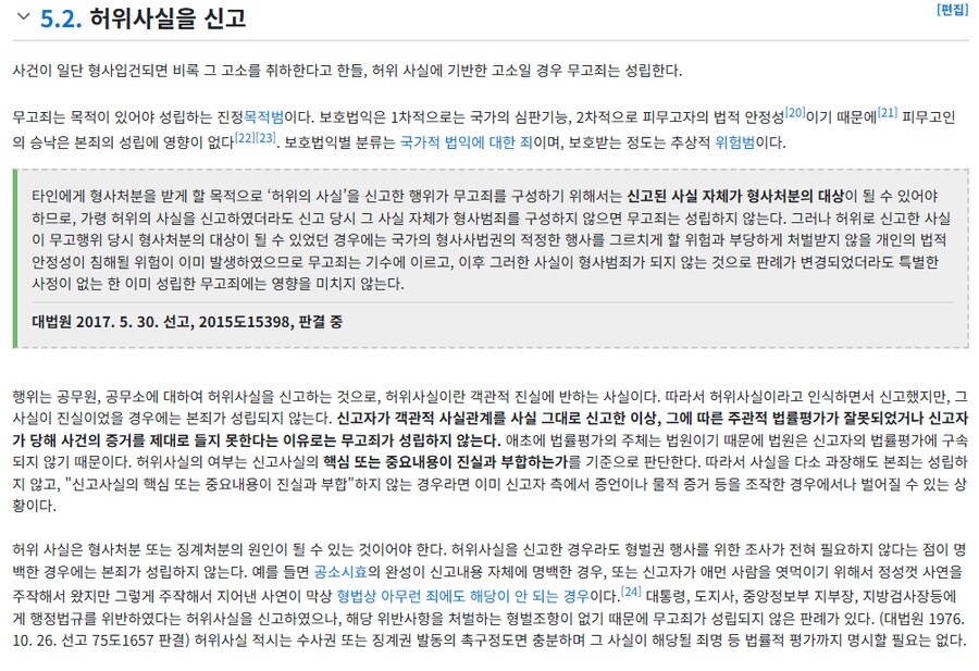 첫째, 단순히 신고가 받아들여지지 않았다는 것 만으로는 그것이 곧 신고자가 자신의 신고가 거짓이라는 것을 인식했다고 할 수 없다. 둘째, 신고자가 진실로 허위임을 인식하고 신고했다 하더라도, 신고 내용 자체가 허위가 아니라면 무고의 구성요건이 아니다. 여기서 신고 내용이라는건 판단을 제외하고 정말 사실 자체만을 얘기하는거임. 그러니까 쟤가 내밀었다는 캡처나 pdf 자체가 주작이 아니라면 무고가 아님 | 25.08.18 16:36 | | |