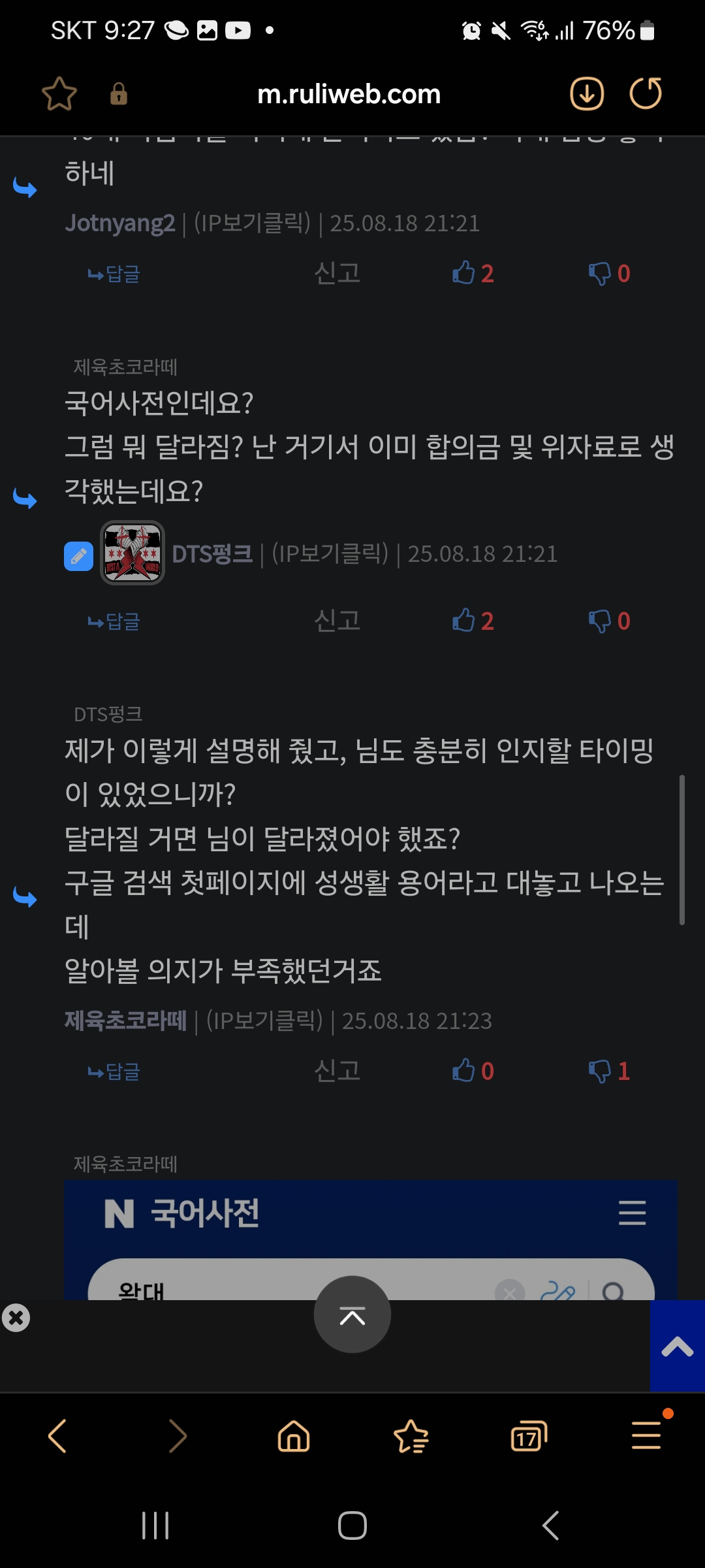 아직도 통매음 신고 아득바득 우기고 있어 구글검색 모르냐며 | 25.08.18 21:28 | | |