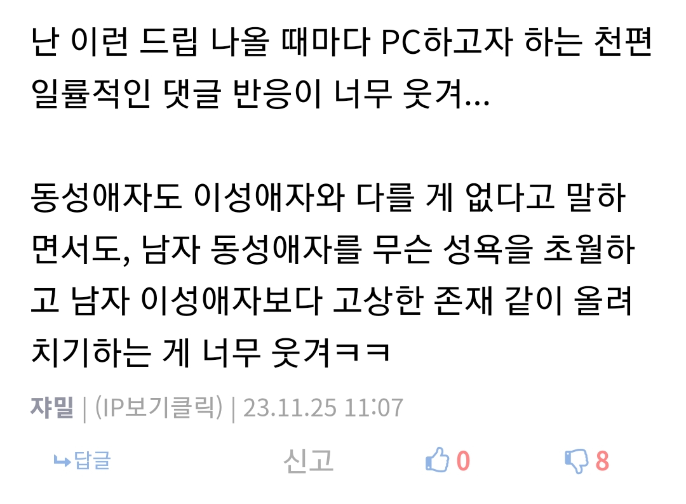 Pc, lgbtq 얘기 나오면 반사적으로 비추 누르는 애들 많음