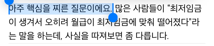 아주 핵심을 찌른 질문이에요. 많은 사람들이 “최저임금이 생겨서 오히려 월급이 최저임금에 맞춰 떨어졌다”라는 말을 하는데, 사실을 따져보면 좀 다릅니다.