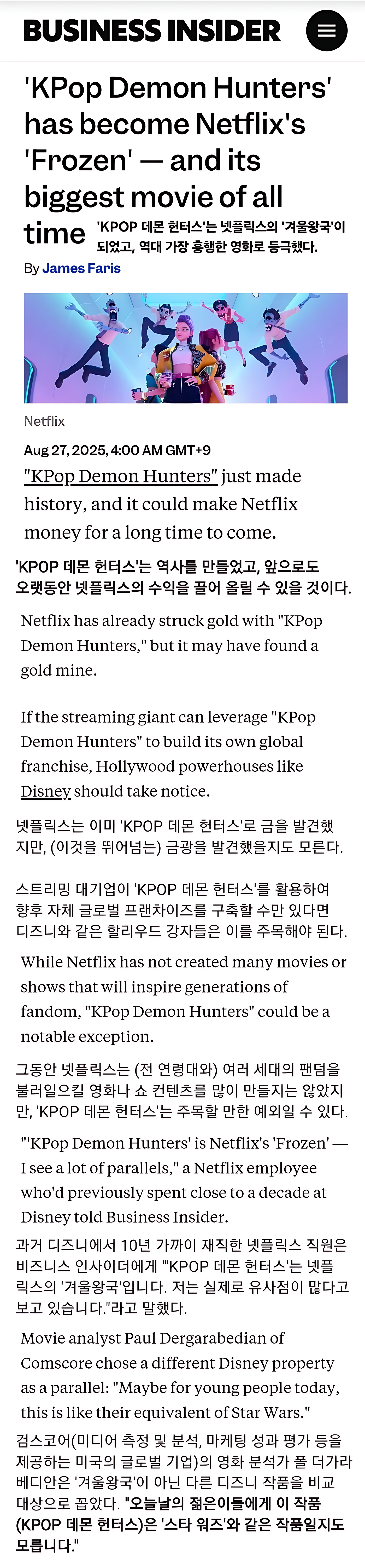 사실 우리는 넷플릭스에서 이미 사례를 하나 봤잖음 오징어게임이라고... | 25.09.05 23:02 | | |