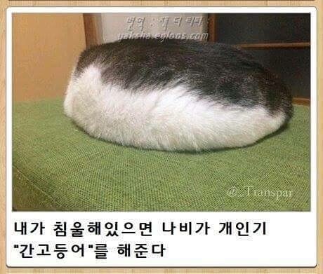 흐으응... 뭔가? 고양이를 안고 잘 수 없는 반쪽짜리 집사여?