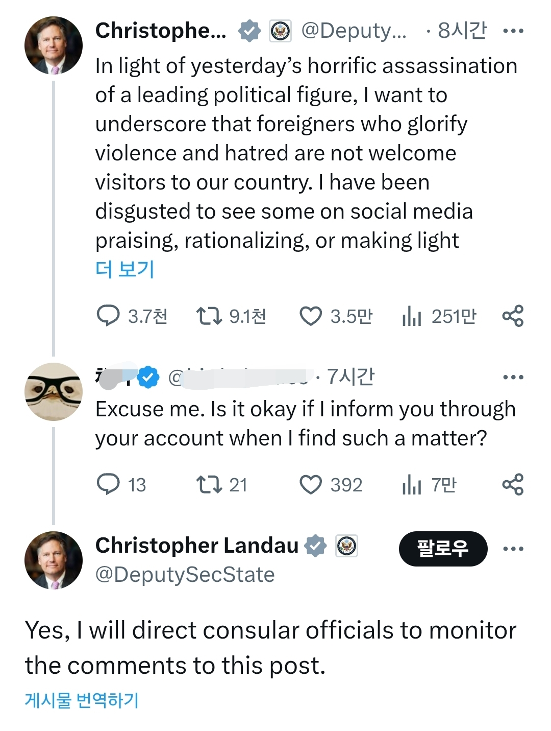 “우리의 조치도 정치적 표현이다.” | 25.09.12 06:52 | | |