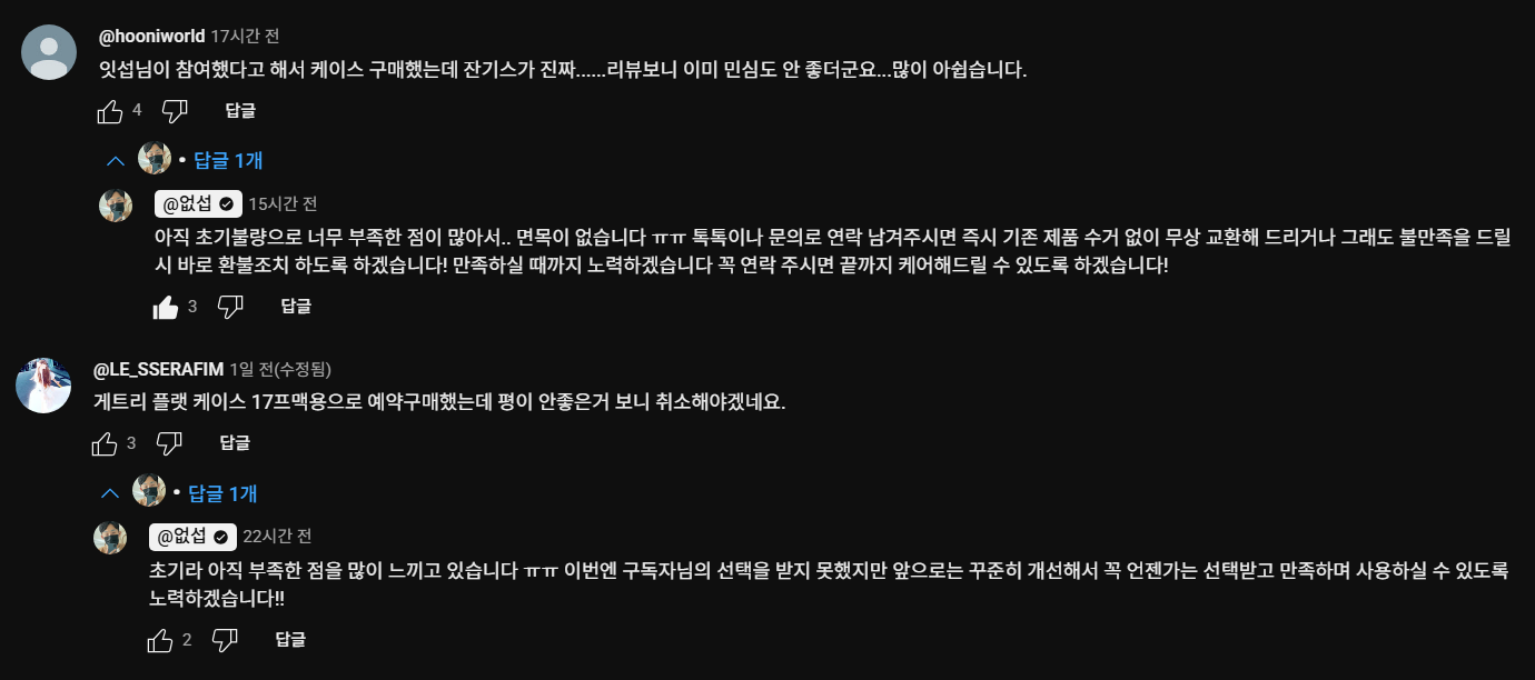 환불은 당연한거고, 이름 걸고 한 물건이 저러면 신뢰도 문제임 | 25.09.21 17:23 | | |