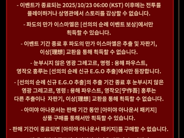 에고하나는 이벤트 재화 보상 3개는 가챠 아나운서는 패키지 온니 ㅇㅇ | 25.09.22 18:21 | | |