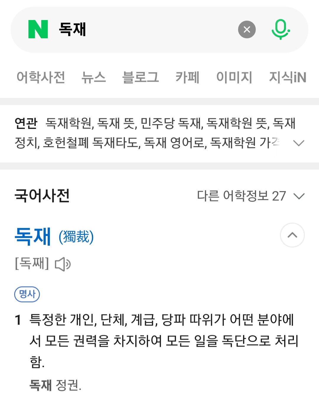 뭔개소리야 독재 요건은 1명이 전제정치하는게 아니라니까 하다못해 네이버만 쳐도 나오는걸 아득바득 우기네 | 25.09.28 12:44 | | |