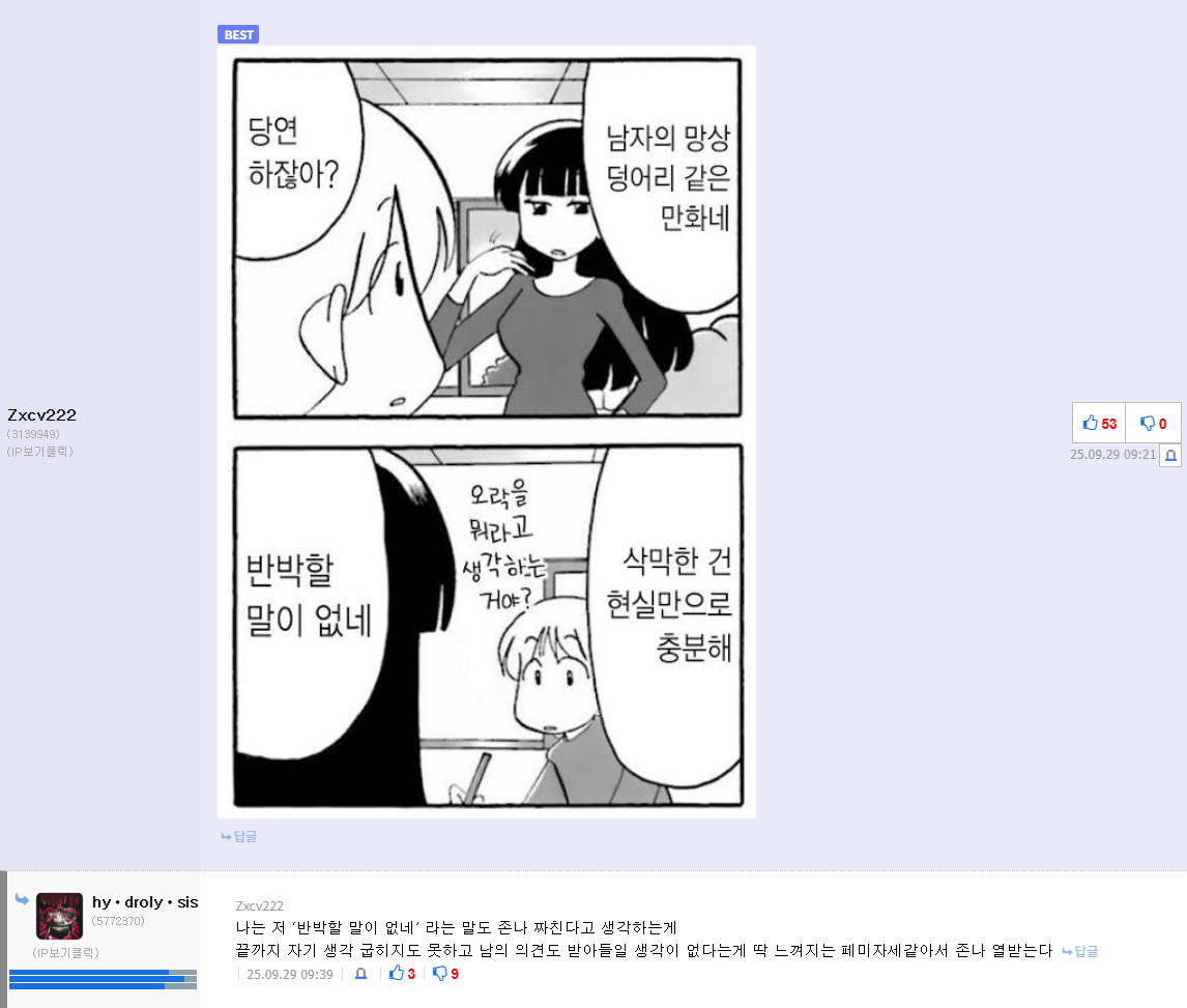 야 할거면 이걸로 해 이게 더 많아 그리고 뭘해도 너보다야 ㅋㅋㅋ | 25.09.29 11:30 | | |