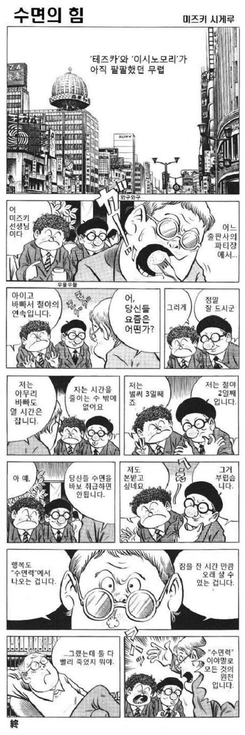 "나는 기운이 아주 센 사람인데도 8시간 안 자면 일을 못해요. 앞으로 잠 적게 자고 일한다는 놈 있으면 병자 아니면 사기꾼이니까 그런 사람이랑 장사하면 안돼." | 25.09.29 19:38 | | |