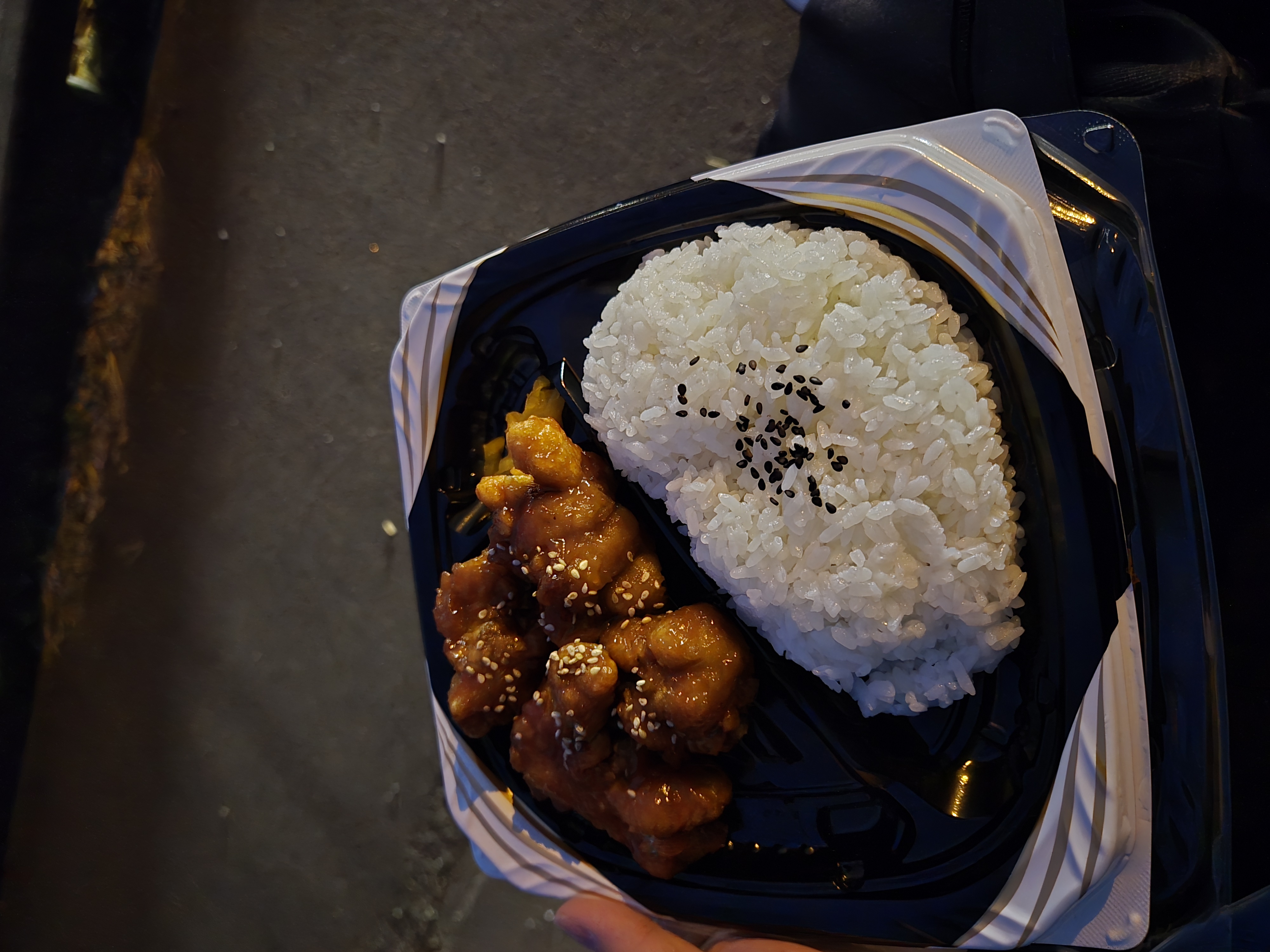 도쿄 외곽 갔다가 버스 끊겨서 길바닥에서 마트 도시락 먹는 모습