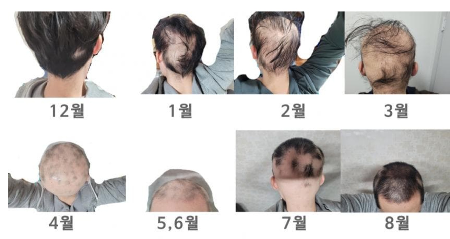 이런 탈모는 피부밑에 모근이 그대로 남아있기때문에 병세만 호전되도 금방 복구됨