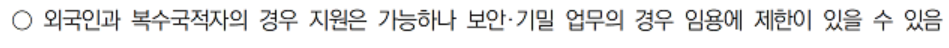 복수국적자의 임용제한 임용권자 또는 임용제청권자는 법령으로 정한 각 기관의 소관 업무 중 아래의 각 호의 업무 분야에는 복수국적자의 임용제한 가능 국가안보와 관련되는 정보·보안·기밀 및 범죄수사에 관한 분야 대통령 및 국무총리 등 국가 중요 인사의 국정수행 보좌 및 경호에 관한 분야 외교관계·통상교섭 및 국제협정에 관한 분야 남북간 대화·교류·협력 및 통일에 관한 분야 검찰·교정 및 출입국관리에 관한 분야 군정 및 군령, 무기체계 획득, 방위력 개선 및 그 밖의 군사에 관한 분야 국민의 생명·신체·재산보호, 기업의 영업비밀 및 신기술 보호, 주요경제·재정 정책 및 예산운영에 관한 분야 그 밖에 보안 시설·지역 출입,비밀문서·자재취급 등 업무의 성질상 국가의 안보 및 이익에 중대한 영향을 미칠 수 있는 분야로서 복수국적자가 수행하기에 부적합하다고 인정하여 소속장관이 정하는 분야 제대로 써놨음. 원자력 관련 분야는 국가 보안 시설이고, 여기 일하려면 한국 국적자만이 가능함. | 25.10.01 16:01 | | |