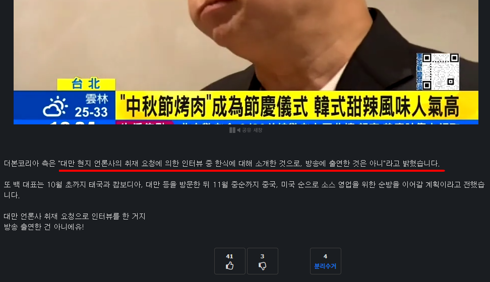 [유머] 더본코리아 '백종원, 대만방송 출연하지 않았다.' [31]