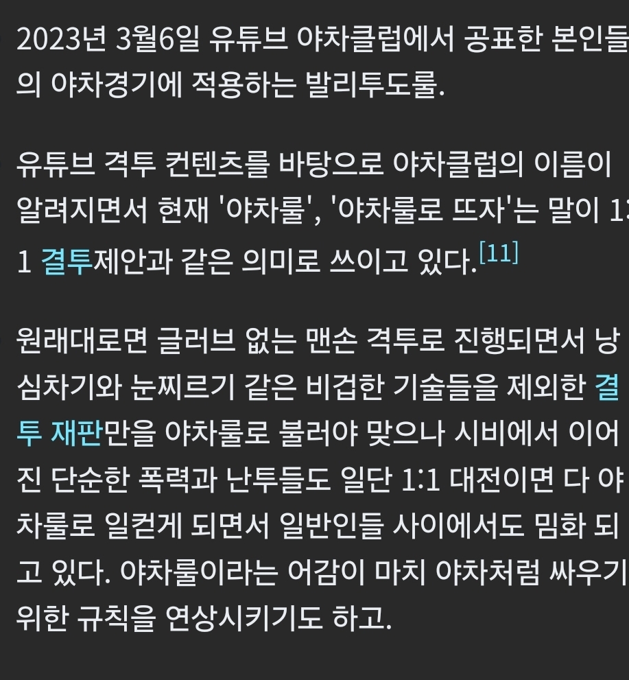 ㅇㅇ 길거리 맞짱 반칙 없고 뒷끝 없고 야차 룰이라고 함 왜 야차인지는 모르겠음 ㅋㅋ | 25.10.02 10:29 | | |
