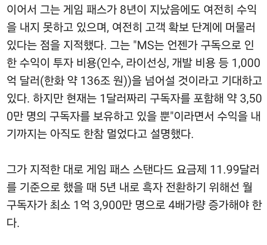 애초에 게임패스 자체가 수익성에 문제가 많다는 지적이 꾸준했었음 | 25.10.02 18:15 | | |