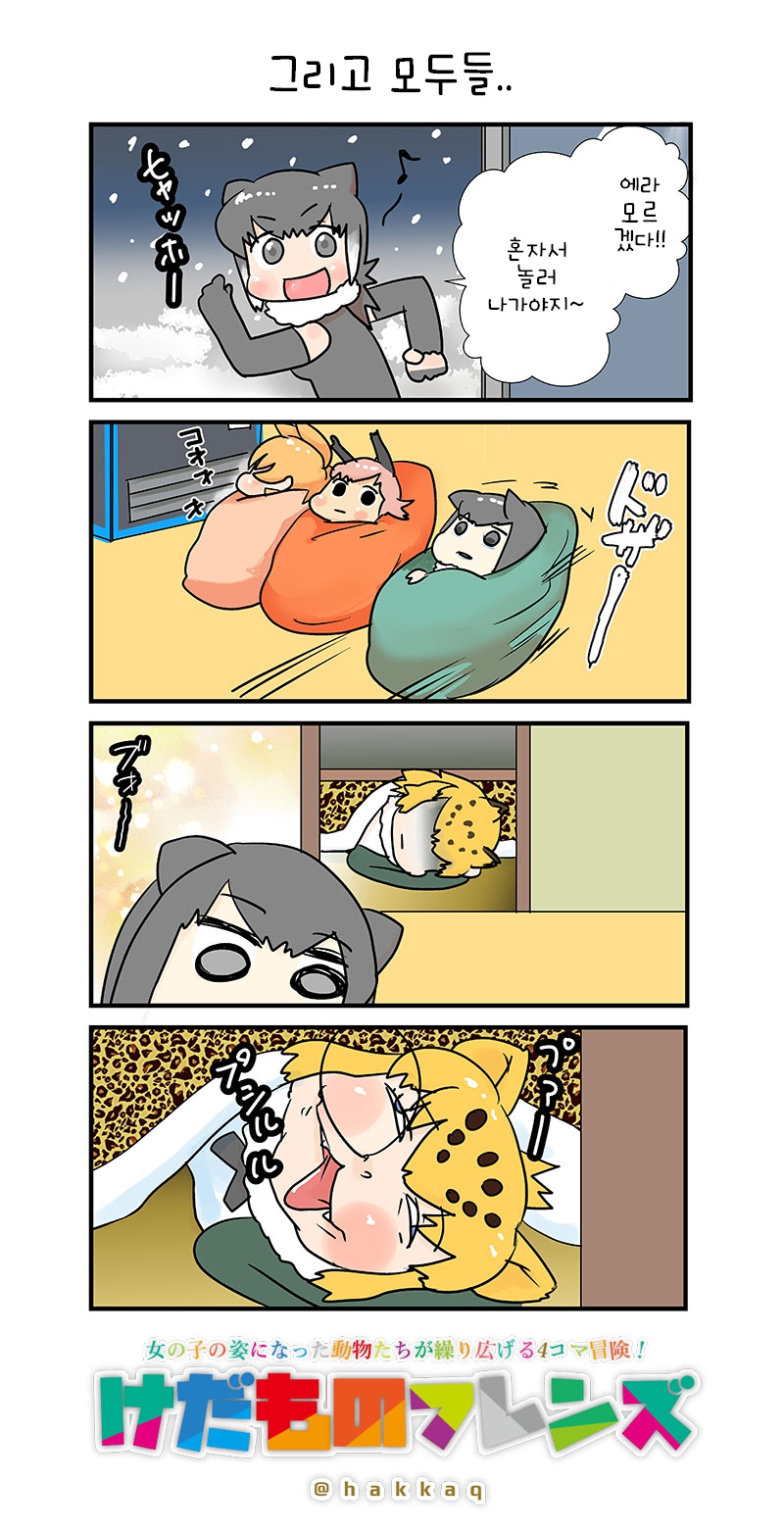 원작에서도 사바나 지방 살던 서벌이 가방 따라서 추운 지역으로 여행가자 점점 건강이 악화된다는 언급이 있었음 | 25.10.03 10:04 | | |