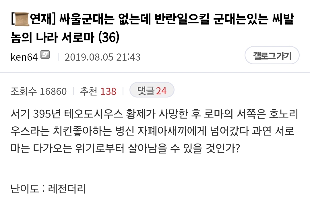 문화적으론 동롬이 젤 발달한 거 같긴 한데 그 다음으론 신롬이 나사빠진 게르만 추장회가 로마라니까 웃음벨 겸 호감이 더 가는 느낌 | 25.10.06 10:06 | | |