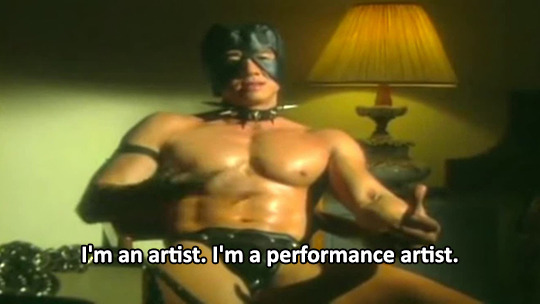 저는 예술가입니다. 행위예술가죠. 저는 그들의 환상을 채워주기 위해...고용되었습니다. 그들의 깊고♂️어두운♂️환상을♂️ 말이죠.