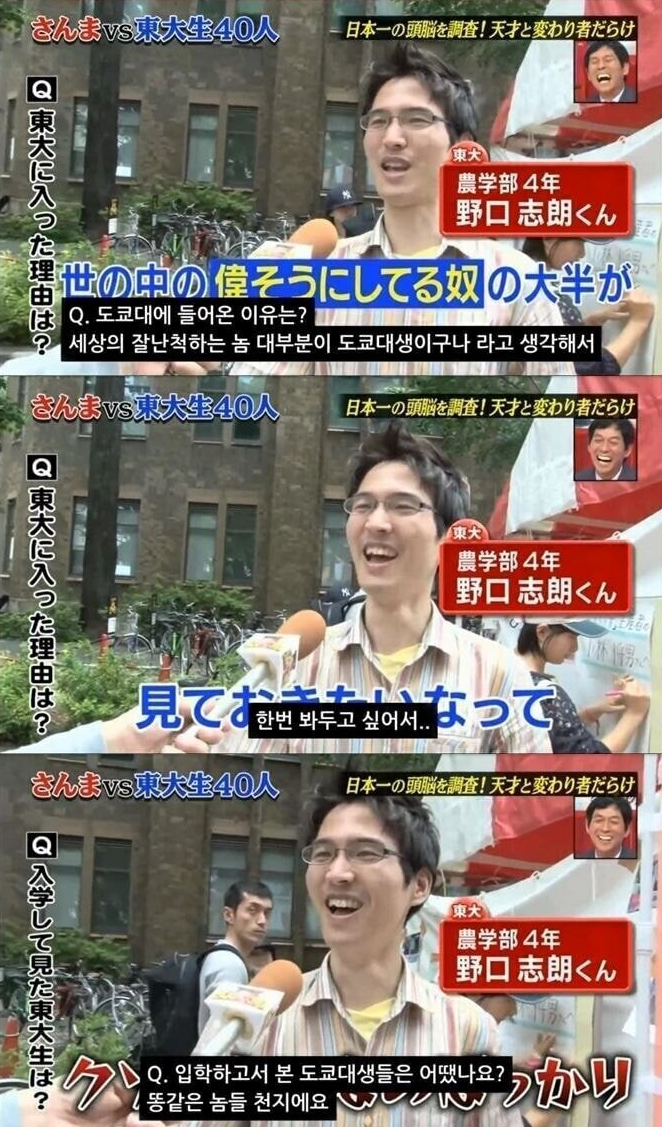 ㅇㅇ 솔직히 나도 지방잡대 출신으로 저런말을 나같은 학력이 말하면 웃음벨이지만 도쿄대 나와서 돈보다는 내 신념이 우선이다 이러는거 확실히...똥같은 놈밖에 없다는거랑 합쳐서 난 놈이라는 인상임 ㅋㅋ | 25.10.07 15:08 | | |