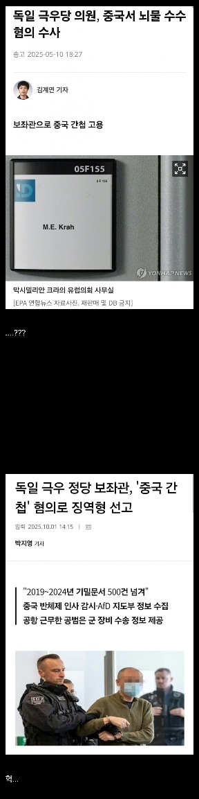 독일도 AfD가 다른 모든 정당 합세한것보다 지지율 높게 나왔다는 기사들 슬슬 뜨고 있음 어쨌거나 우크라이나는 진짜 안타까운 상황 가까워지고 있네 | 25.10.08 00:21 | | |