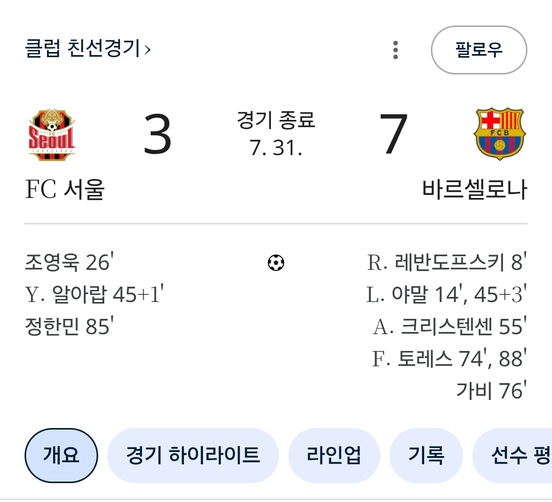 서울이 바르샤 상대로 그래도 3골은 넣었는데 0골은 좀 심한거 아니냐