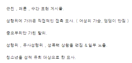유두 노출 이런게 안되는거지 슴가 만지는건 딱히 | 25.10.11 03:43 | | |