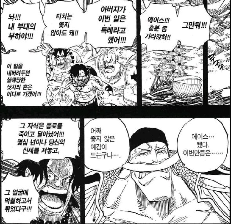 정작 샹크스한테 저렇게 개정색하면서 가오잡는데 진실은 에이스한테 뭔가 느낌 안좋다면서 티치 잡으러 가는거 가지말라고 유기할려고 했지 ㅋㅋ