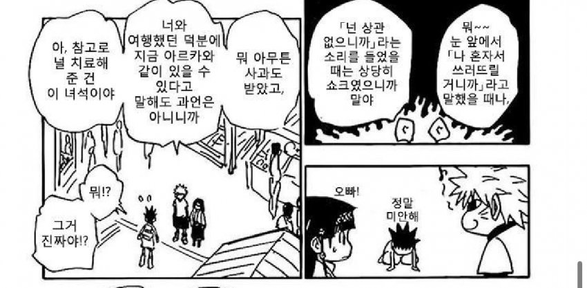 여러모로 키르아가 진짜 착함. 이르미 주박 해제도 곤과의 우정 때문에 성공했고 개그 느낌으로 넘어갔지만 곤이 무릎 꿇고 사과할 정도면 나름 사과는 제대로 받았지만 그냥 쿨하게 용서해주고