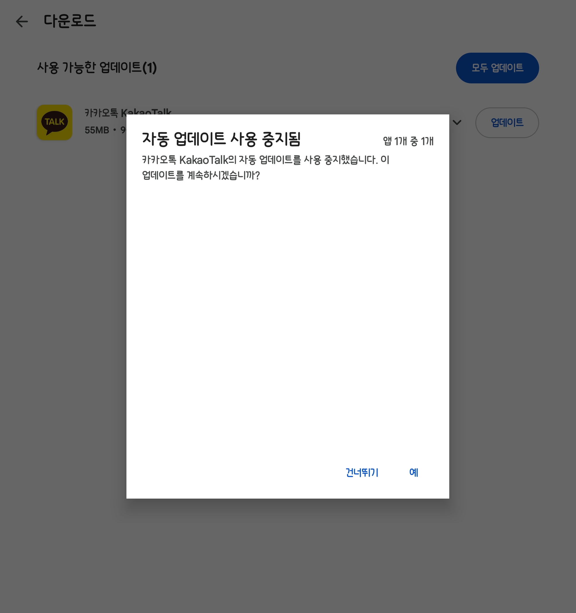 그러고 보니 모두 업데이트 누르면 이렇게 체크박스 해제해 둔 앱들도 대상이 되는건지 궁금하네...