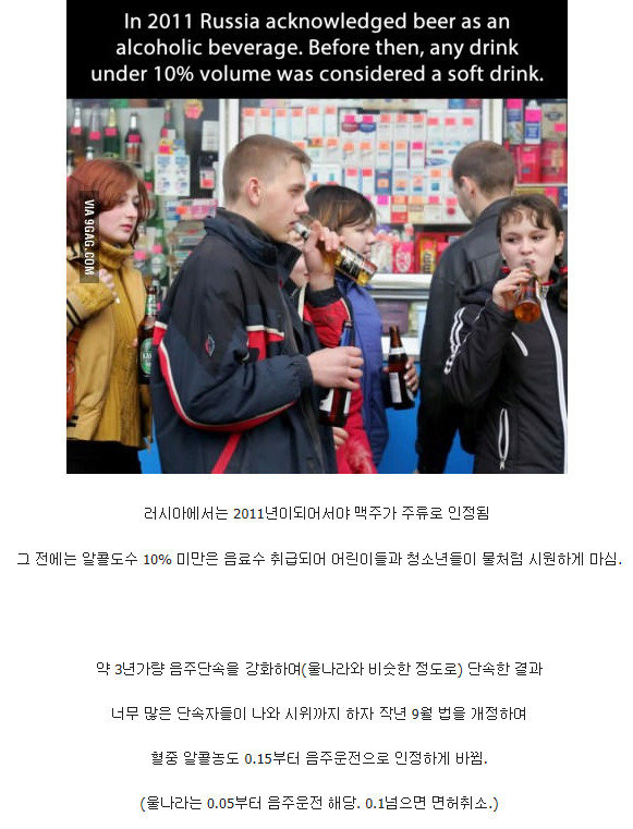 러시아인 : 이정도로 낮은 도수의 물이 술이라고 불릴리가 없다.