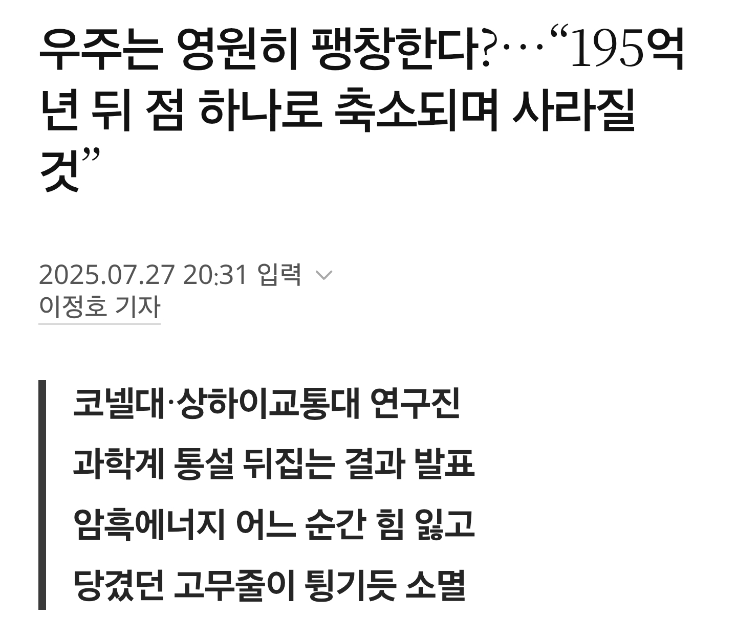 빅뱅 빨던 애들 지금 빅 크런치 시나리오에 충격먹음