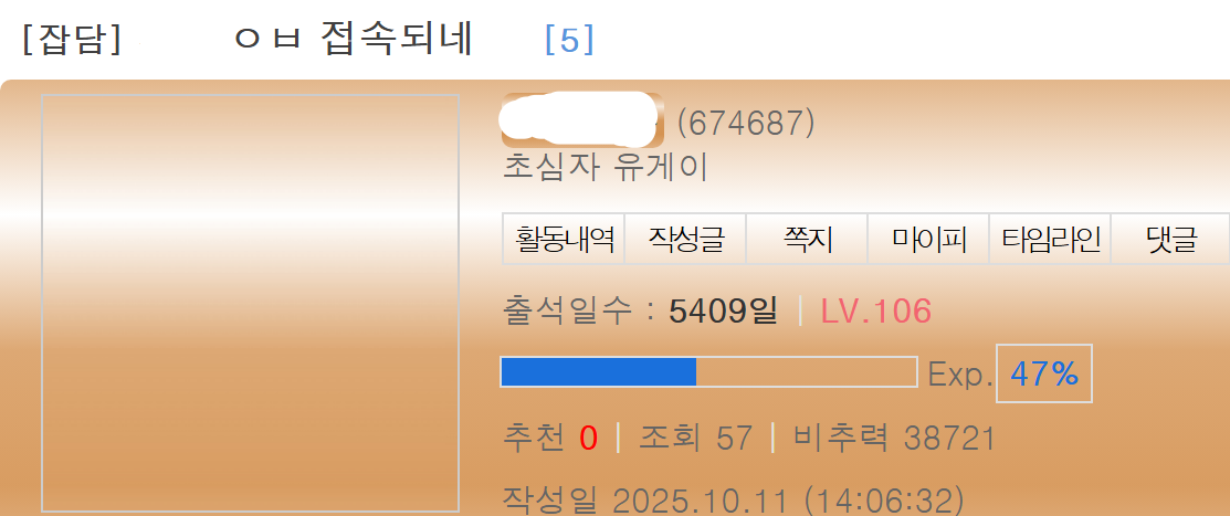 안해 소문듣고 잠깐 들어갓다거 | 25.10.11 14:14 | | |