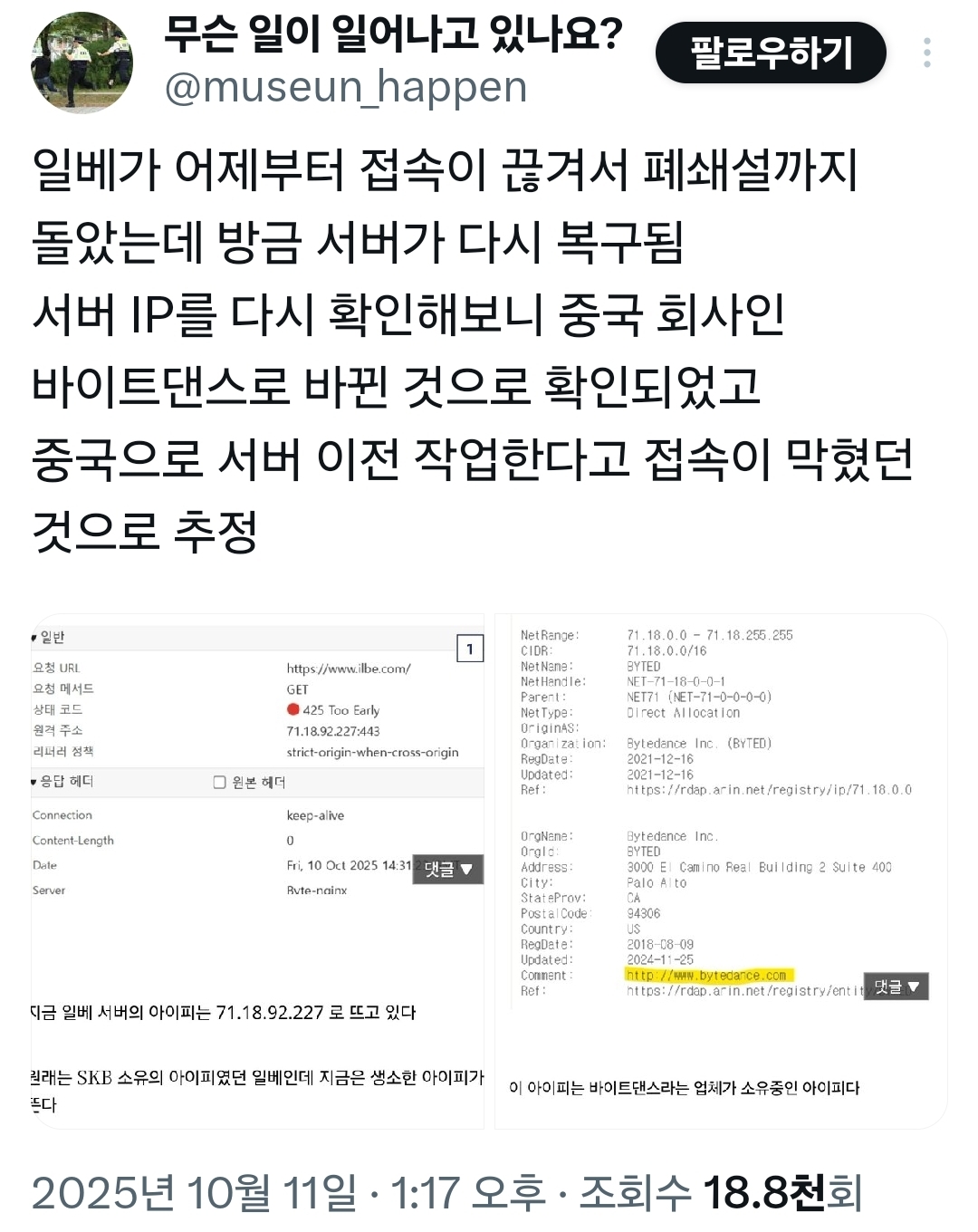 뭐야 일베1충들 다 짱1깨됐네 | 25.10.11 14:08 | | |