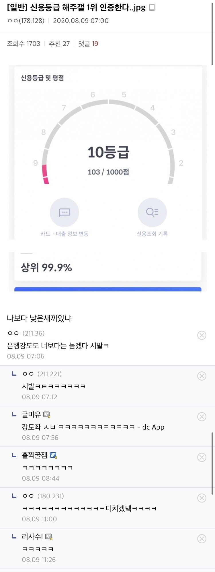 신용등급 유머 짤 생각나네 ㅋㅋ